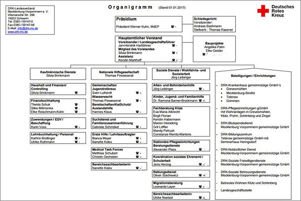 Organisationsstruktur der DRK-Landesgeschäftstelle Musterland. Für eine größere Ansicht klicken Sie auf das Bild.